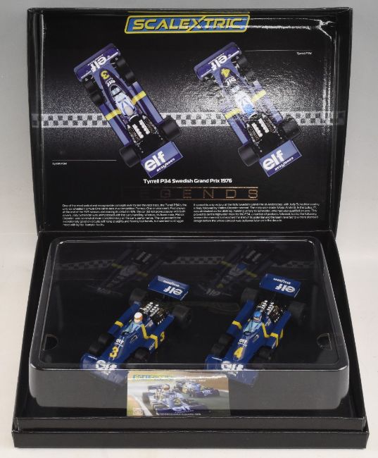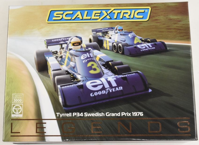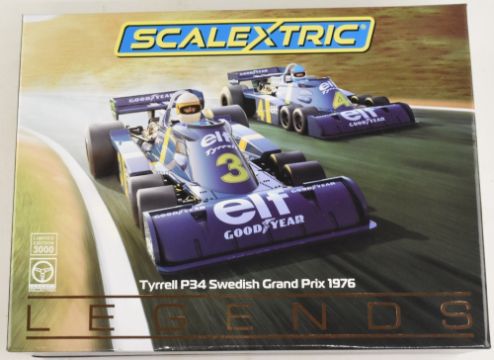 Scalextric C4084A Tyrrell P34 Swedish Grand Prix 1976 Legends. This limited-edition Collector's Twin Pack is sure to be a popular addition to any slot car fan's collection and with only 3000 units available Worldwide, is likely to be as iconic as the six-wheeled Formula One car itself. Race: Swedish GP 1976. Driver (s): Jody Scheckter & Patrick Depailler