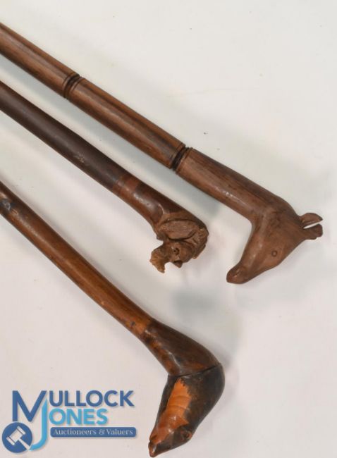 Selection of Walking Sticks all having carved animal heads to include Badger, Giraffe, Rhinoceros (3)