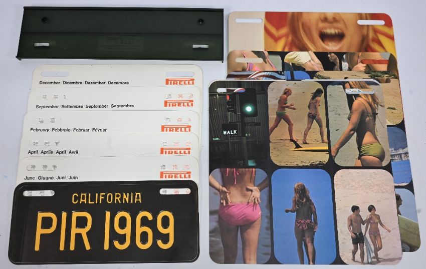 Pirelli Calendar 1969: Spirit of the California Beach Scene in original cardboard folder. Rightly considered a classic, the 1969 Pirelli Calendar has been a source of inspiration for image makers and a reference point for countless subsequent beach shoots. The pictures - untouched and thrillingly immediate - occupy that sweet spot in commercial photography where reportage meets advertising, all with an unmistakeable erotic charge. This opening image from the 1969 Pirelli Calendar, shot in California by British photographer Harri Peccinotti, established the tone and art direction of the whole, with the use of multiple frames (a technique replicated throughout) and highly suggestive material. Shot by British photographer Harri Peccinotti, it successfully caught the feel of the Los Angeles beach scene in the late 1960s. We see bikini-clad women on the sand, open-top cars on the highway, surfers riding the waves, and even a topless performer on stage at an after-hours club - aspects of an uninhibited West Coast lifestyle. As well as its washed-out aesthetic, what sets the Calendar apart is its design, which makes use of multiple panels and long-lens photography - effects that defined the era and were famously deployed in movies such as The Thomas Crown Affair and Dirty Harry