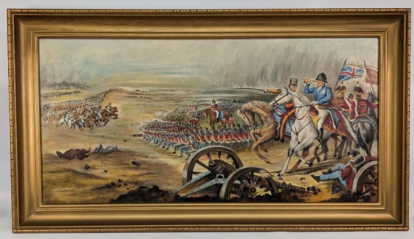 Large Napoleonic Scene Oil Painting by Amateur Artist E Davies, oil on canvas - frame size #58cm x 104cm