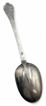 c1700 Antique Silver Trefid Spoon, with oval bowl and rat tail, the reverse handle, markings are worn with Crown Co only left showing - 19cm long #40g