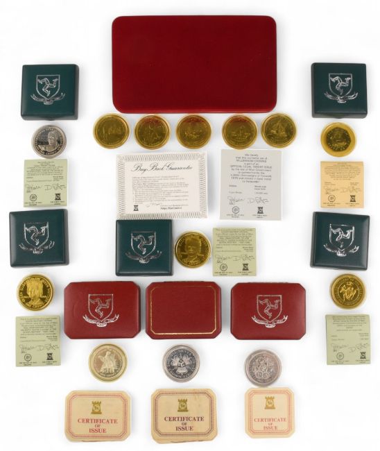 Selection of Isle of Man Medallions to include Millenium Cupro Nickel set of Crowns, 3 Proof Silver Crowns, 1980 Queen Mother crown x2, 1980 Derby crown, 1981 Year of the Disabled all cased