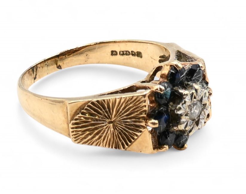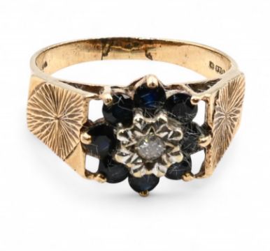 9ct Gold Hallmarked Ring Diamond and Onyx c1960 setting UK size O #4.2g with stones - hallmarks rubbed