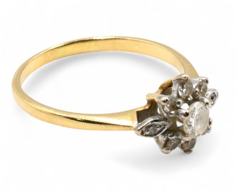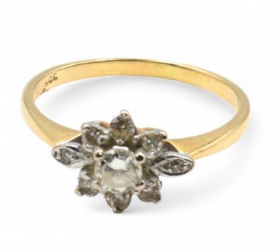 18ct Gold and Diamond cluster ring - UK size O 3.1g with stones