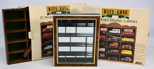 5 Days Gone 15 Model Display Cabinets Wooden 15-hole wall mounted display new in boxes together with Mercedes Benz A Class 1997 1:18 scale and Remote Control F1 Racing Car (2 boxes)
