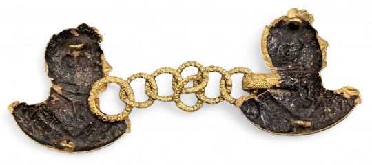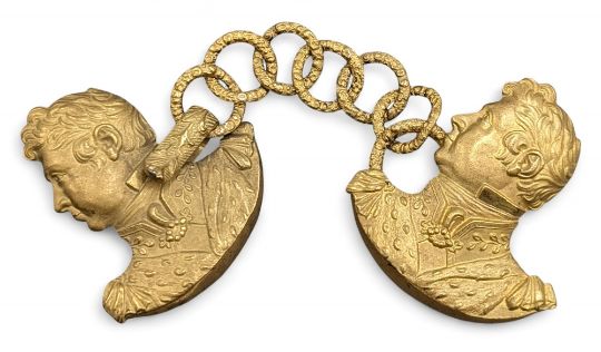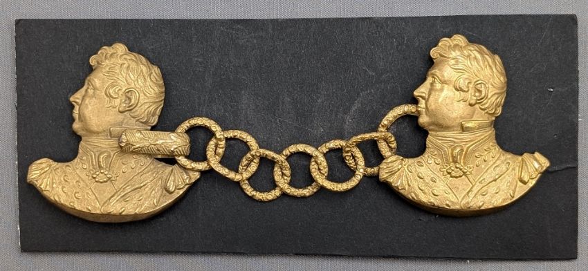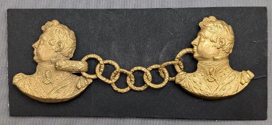 Georgian early Victorian Nobleman's Gents Gilt Cape Clasp two Figures with Chain links, #13cm
