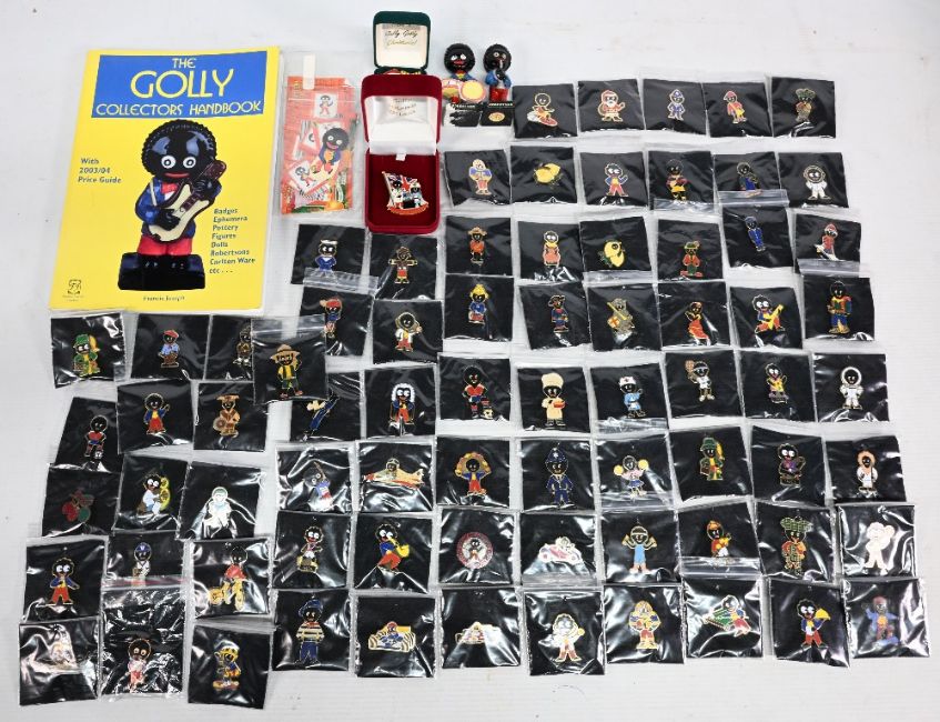 Robinsons Golly Badge Collection: Mostly later examples over 70, together with labels of the jars and the Collectors Book (box)