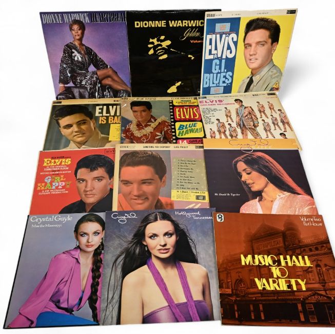 Music - Selection of Vinyl Records features Elvis Prestley, Nat King Cole, Otis Redding, Crystal Gayle etc, with sleeves in varying condition approx. x30 Box