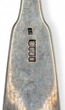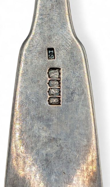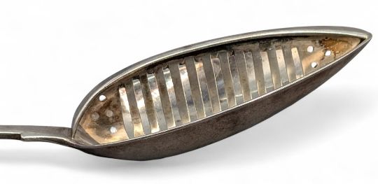 1817 James Scott Dublin Irish Silver Hallmarked large Strainer Spoon, having a good crest engraved to handle - #32cm long and 150g. Good