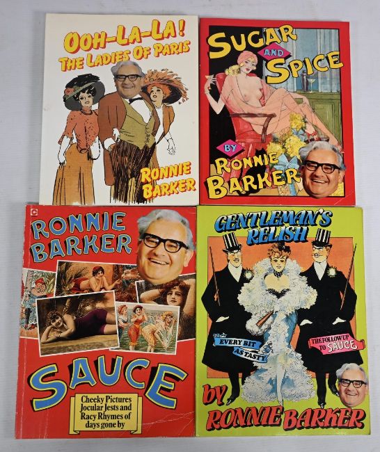 Ronnie Barker Books (4) including Ooh-La-La The Ladies of Paris, Sugar and Spice, Sauce, and Gentleman's Relish all with risqué images - generally in G overall condition