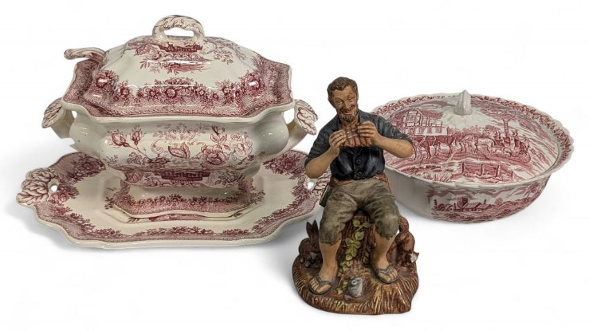Fine Mason's Pink Ascot Soup Tureen, with a Royal Mail Staffordshire tureen, saucer, lid and serving spoon, plus a Royal Doulton Dream Weaver Figure HN 2283