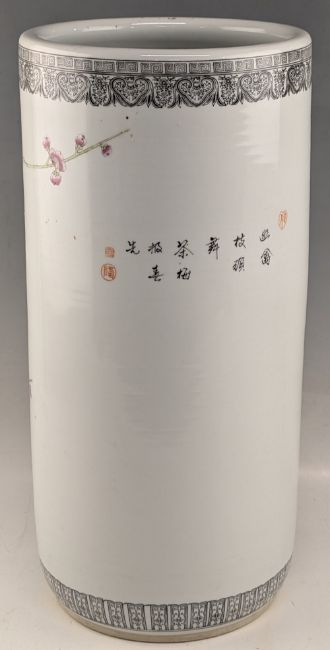 Chinese Famille Rose Ceramic Umbrella or Walking Stick Stand, 46cm tall - in good condition