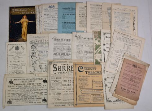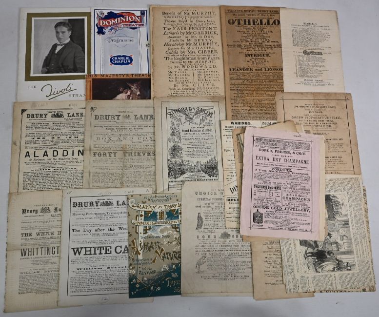 Music & Entertainment - Selection of Early Theatre Programmes features The Fair Penitent c.1750s, Charlie Chaplin The Tivoli Strand, Charlie Chaplin Dominion Theatre, 1814 Othello Drury Lane, mixed Theatres from 1867 onwards from Globe Theatre, St James's Theatre, Prince of Wales Theatre, and a selection of Drury Lane from 1870s onwards - condition mixed F/G overall (#35)