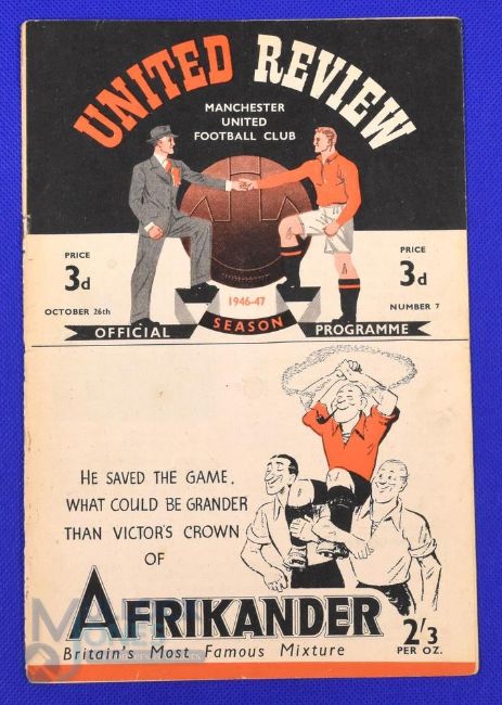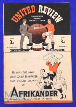 1946/47 Manchester Utd v Sunderland Div. 1 match programme 26 October 1946; cover just holding on staple, overall fair at best. (1)