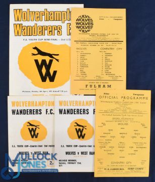FAYC Wolverhampton Wanderers home programmes 1966/67 Coventry City, 1967/68 Coventry City, 1970/71 WHU (replay), WHU (2nd replay Arsenal (FAYC s/f); fair/good. (5)