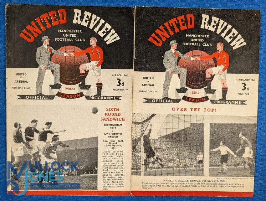 1950/51 Manchester Utd v Arsenal Div. 1 match programme 3 March 1951; Manchester Utd v Arsenal FAC 5th round match programme; fair. (2)