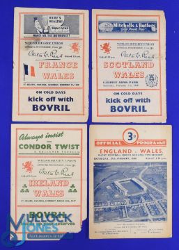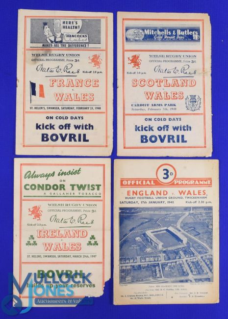 1947 and 1948 Wales Rugby Programmes (4): In fair to good order, Wales v Ireland 1947, and v Scotland and v France 1948, plus that year's Twickenham card issue v England. Fill a gap, get a bargain perhaps?