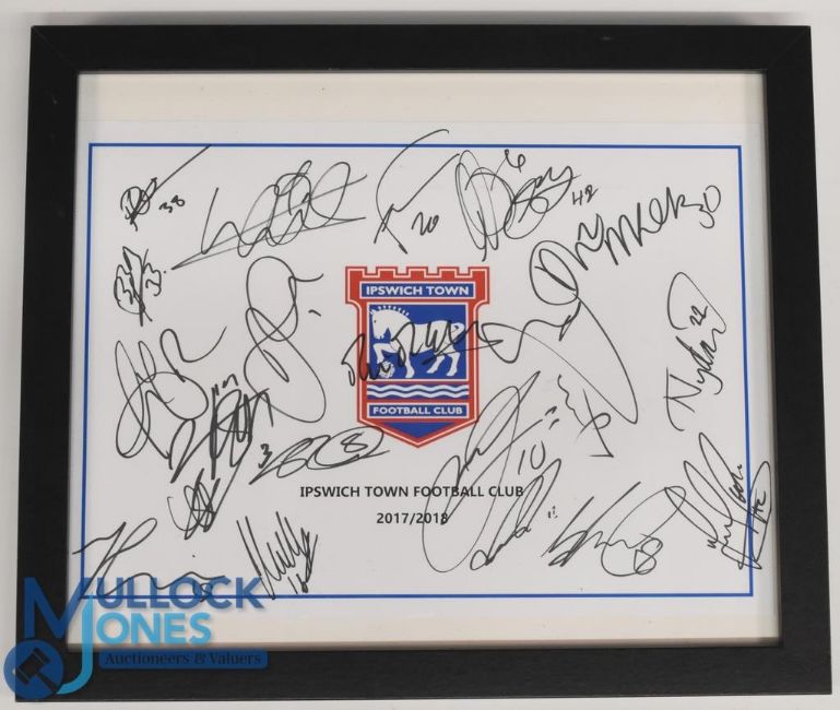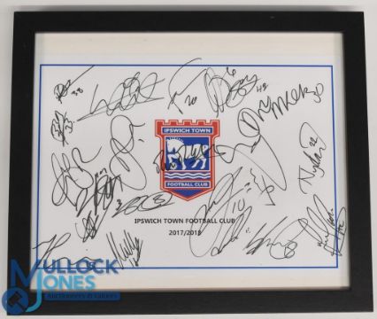 A framed Ipswich Town Football Club 2017-2018 Sheet signed by twenty including Adam Webster, Cole Skuse and Jonas Knudsen