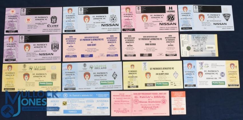Football Tickets: St Patrick's Athletic home European cup match tickets v 1998/99 Celtic (UEFA), 1996/97 Slovan Bratislava (UEFA), 1999/2000 FSC Zimbru (Champions league), 2007/08 Odense BK (UEFA), 2008/09 JFK Olims Riga (UEFA), 2009/10 Valletta (Europa), Krylya Sovetov (Europa), Steaua Bucharest (Europa), 2002/03 KAA Gent (UEFA Inter Toto), HNK Rijeka (UEFA Inter Toto), 2012/13 Hannover 96 (Europa), NK Siroki Brijeg (Europa); 2013/14 Zalgiris Vilnius (Europa), 2011/12 IBV Vestmannaeyjer, Karpaty Lviv; fair/good. (15)