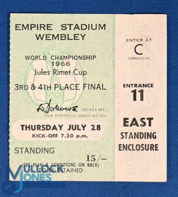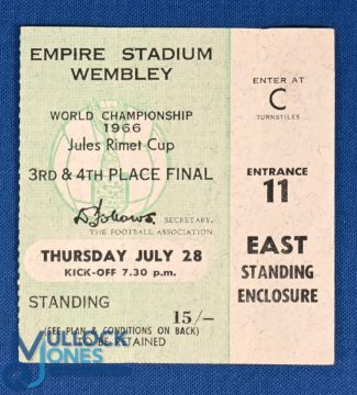 Ticket: 1966 World Cup 3rd/4th place match ticket Soviet Union v Portugal 28 July 1966 at Wembley. (1)