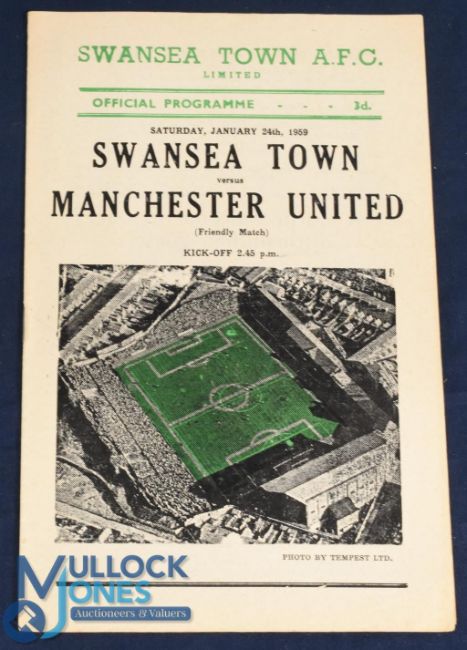 1958/59 Swansea Town v Manchester Utd friendly match programme 24 January 1959; team changes o/wise good. (1)
