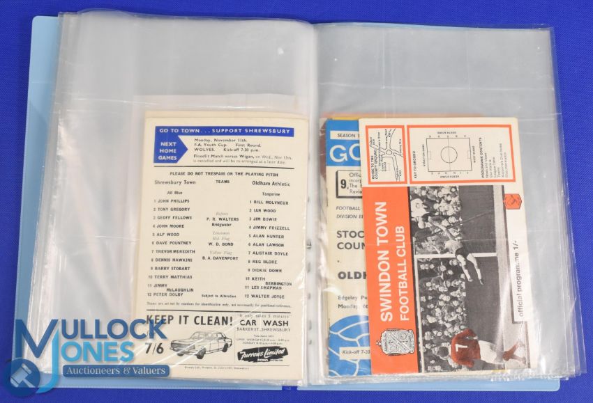 1968/69 Oldham Athletic complete season Div. 3 Away match programmes to include league (23) plus away friendly v Bury (single sheet), away Preston NE (FLC) away Wrexham (FA cup); fair/good. (1 Folder)