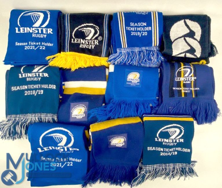 Selection of Rugby Match Scarves (11): All Leinster Rugby featuring season ticket holders' Scarves 2014/15, 2015/16, 2016/17, 2018/19, 2019/20, 2021/22 (some duplication)