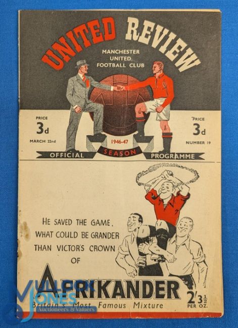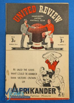 1946/47 Manchester Utd v Everton Div. 1 match programme 22 March 1947; staple removed, small rust marks; fair. (1)