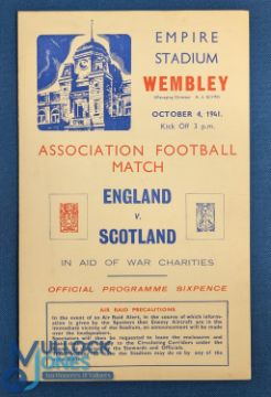 War Time 1941 England v Scotland match programme at Wembley 4 October 1941, 4 page, has score and note about Stan Matthews, o/wise good. (1)