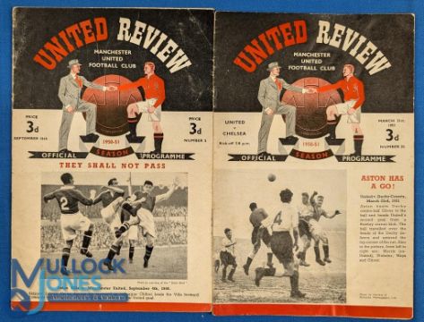 1950/51 Manchester Utd v Chelsea Div. 1 home match programme, v Charlton Athletic Div. 1 home match programme; fair. (2)