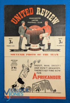 1947/48 Manchester United v Bolton Wanderers Div. 1 match programme 26 March 1948; fair/good. (1)