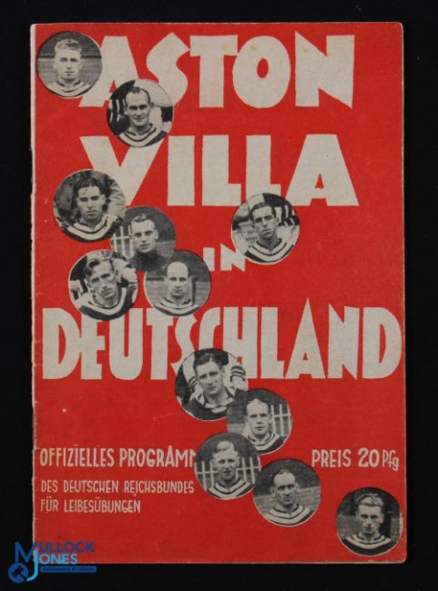 1938 Germany v Aston Villa football programme date 15 May, Berlin, in German language, minor nicks, light marks apparent, G condition overall
