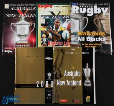 1998-2001 Australia v NZ Rugby Programmes (5): All for the Bledisloe Cup, again large glossy interesting issues, from Sydney 1998, 99, 2000 & 01 & Melbourne 1998. VG