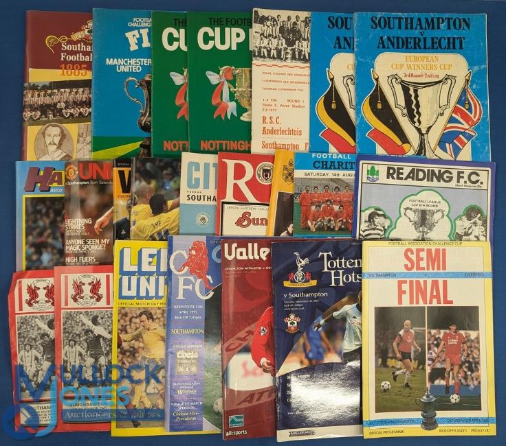 Assorted 1980s onwards Southampton home and away football programmes (#35) features 85 Centenary souvenir programme, 77 v Anderlecht ECWC, 76 and 79 FAC Final, plus others - condition mixed A/G