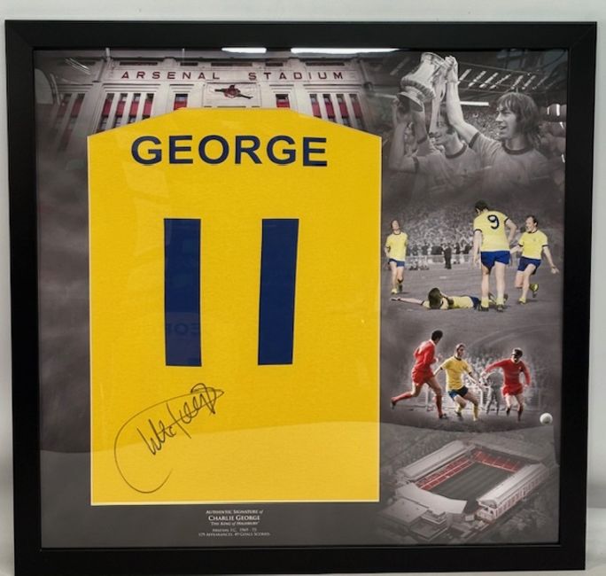 Charlie George framed signed T-Shirt Frame Size 86 x 83 cm with COA