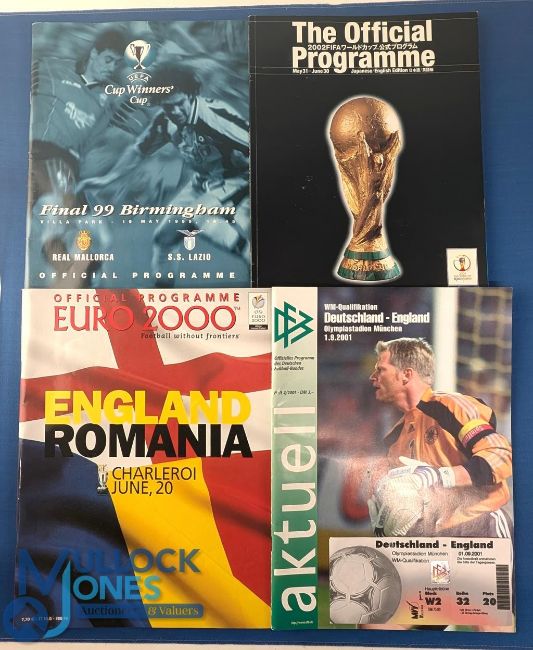 1996-2002 Big Match Programmes: to include 1999 Real Mallorca v Lazio UEFA Cup Winners Final, 2000 England v Romania, 2001 Germany v England World Cup qualifier international, having 2 signatures inside frontpage and comes with match ticket, 2002 World Cup official programme Japan v Korea G