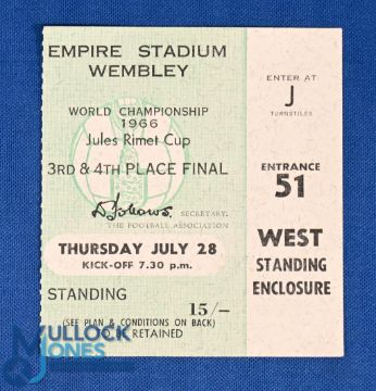 Ticket: 1966 World Cup 3rd/4th place ticket 28 July Soviet Union v Portugal at Wembley, good. (1)