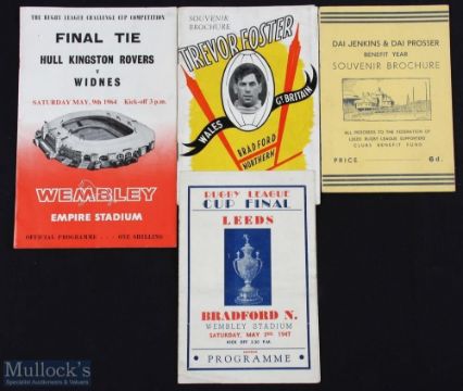 1940s-1960s Rugby League Miscellany (4): Lovely glossy 32pp Trevor Foster Bradford Northern 1955 Tribute Brochure; 1949 Leeds Benefit Year Brochure for Dai Jenkins & Dai Prosser; 'Pirate' Challenge Cup issue, Leeds v B Northern, Wembley 1947; and Hull KR v Widnes, Official Challenge Cup Final prog 1964. VG