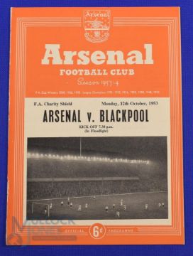 1953 Charity Shield Arsenal v Blackpool match programme 12 October 1953; good. (1)