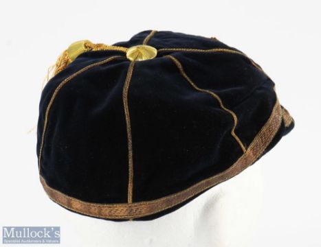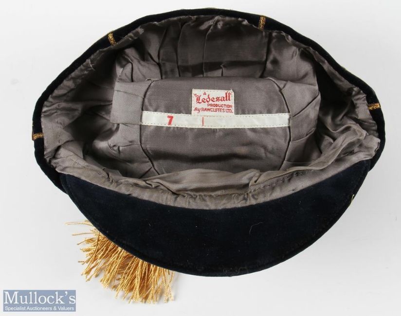 1947 England Schoolboy Football Cap dark blue colour with gold colour edging with wirework tassel, Lions and date, unnamed, a Ledesall cap by Rawcliffes Ltd size 7 unknown recipient
