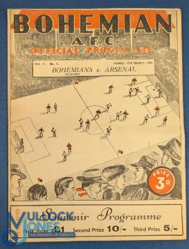 1948 Bohemian AFC (Selected) v Arsenal friendly football programme date 17 Oct, centre fold, light creases, o/w appears in A/G condition overall
