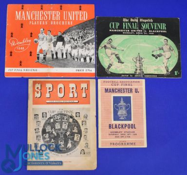 1948 FAC final Manchester Utd v Blackpool at Wembley souvenir match programme (by Ross) 4 pager; Sport magazine Cup Final Souvenir (20 page photographic issue + Daily Mail newspaper cutting) The Daily Dispatch Cup Final souvenir (green/black issue), Manchester Utd Players Brochure (red/white issue) pages loose; programme good, souvenirs mixed condition. (4)