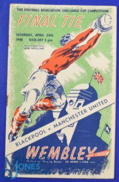 1948 FAC final Manchester Utd v Blackpool match programme 24 April 1948; rusty staples (common fault), slight edge tear back page, overall fair/good. (1)