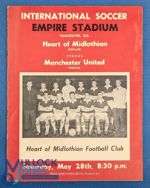 1960 American/Canadian tour to include Heart of Midlothian v Manchester Utd match programme 28 May 1960 at the Empire Stadium, Vancouver; good