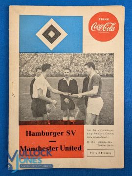 1959 Germany Tour match programme Hamburg SV v Manchester Utd friendly 12 August 1959; Cocoa Cola badge to cover, Bill Foulkes photo; good, no writing. (1)