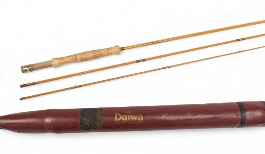 Scarce Daiwa Hexagon Whisker HW 11.3 trout fly rod, 11ft 3" 3pc line 4/7#, alloy uplocking reel seat and collar with wood insert and 4" butt extension, MCB and original zip case. Very light use, superb