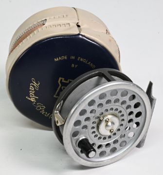 Hardy Bros "The Marquis 5" alloy trout fly reel, 3" ventilated spool, 2 screw latch, black handle, rear tensioner, constant check, 'U' shaped alloy line guide and foot (small loss to one end). In MZC, runs well