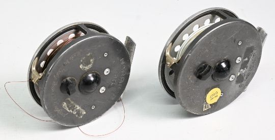 2x Hardy Marquis alloy fly reels a #6 and #7 example both with smooth alloy feet, rear adjusters, line guides, both appear with signs of some use but appear useable and A/G overall