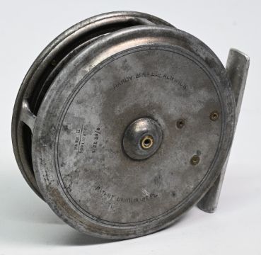 Hardy Bros "Patent Uniqua" alloy trout fly reel Mk II, duplicated 3 5/8" solid spool, horseshoe latch white handle (stiff), constant check, alloy foot. Wear for age, runs well