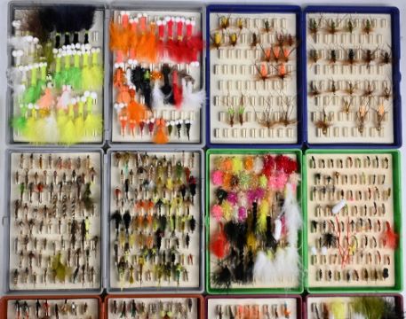 Collection of 6x Fox boxes full of trout Stillwater flies, lures, boobies, buzzers, nymphs, fritz and gold heads. Will last a lifetime (6)